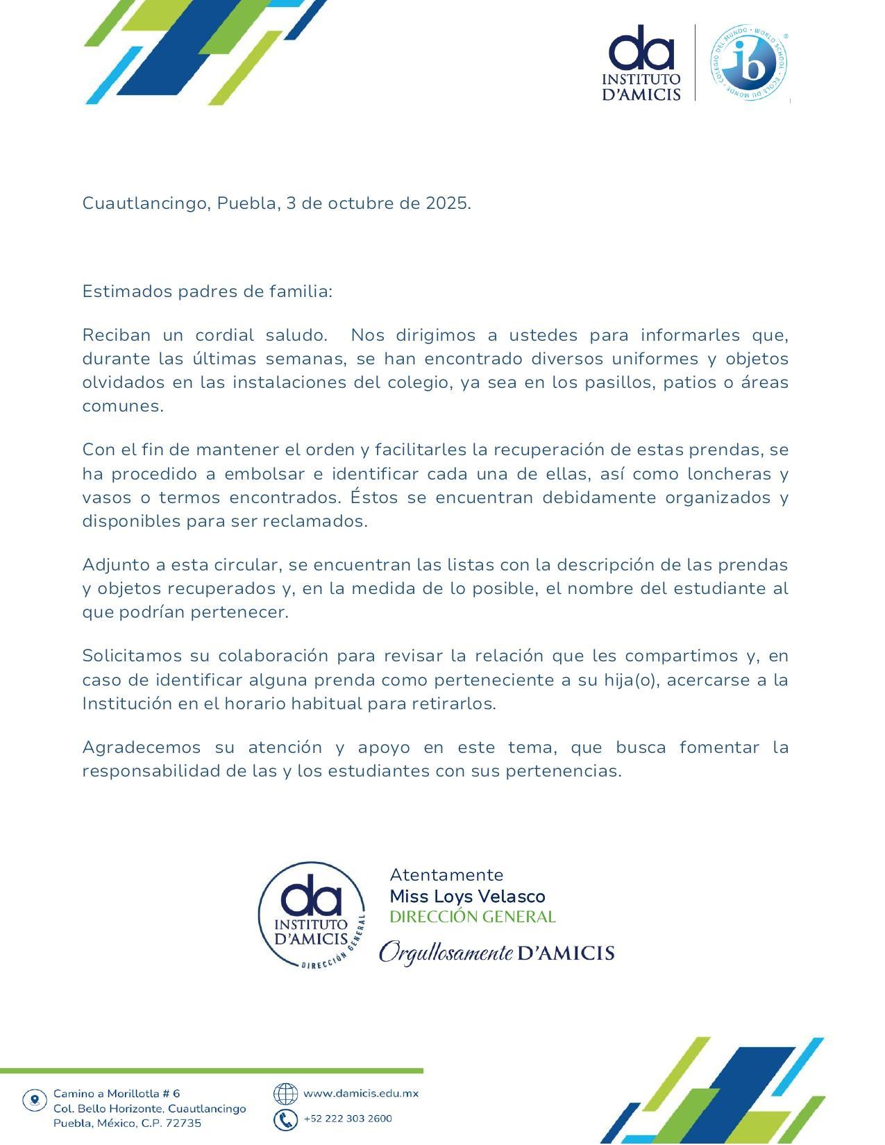 Se adjunta documento en PDF para que puedan ver la relación de uniformes y objetos extraviados.