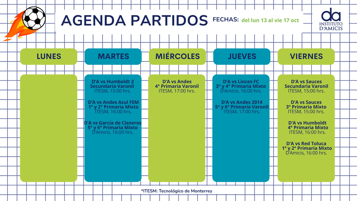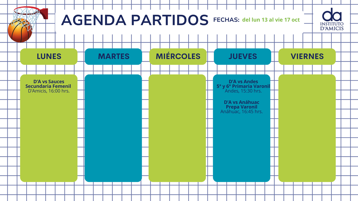 A partir de ahora cada semana compartiremos con ustedes el calendario de partidos de futbol, basquetbol y volibol en los que estarán participando nuestros estudiantes.