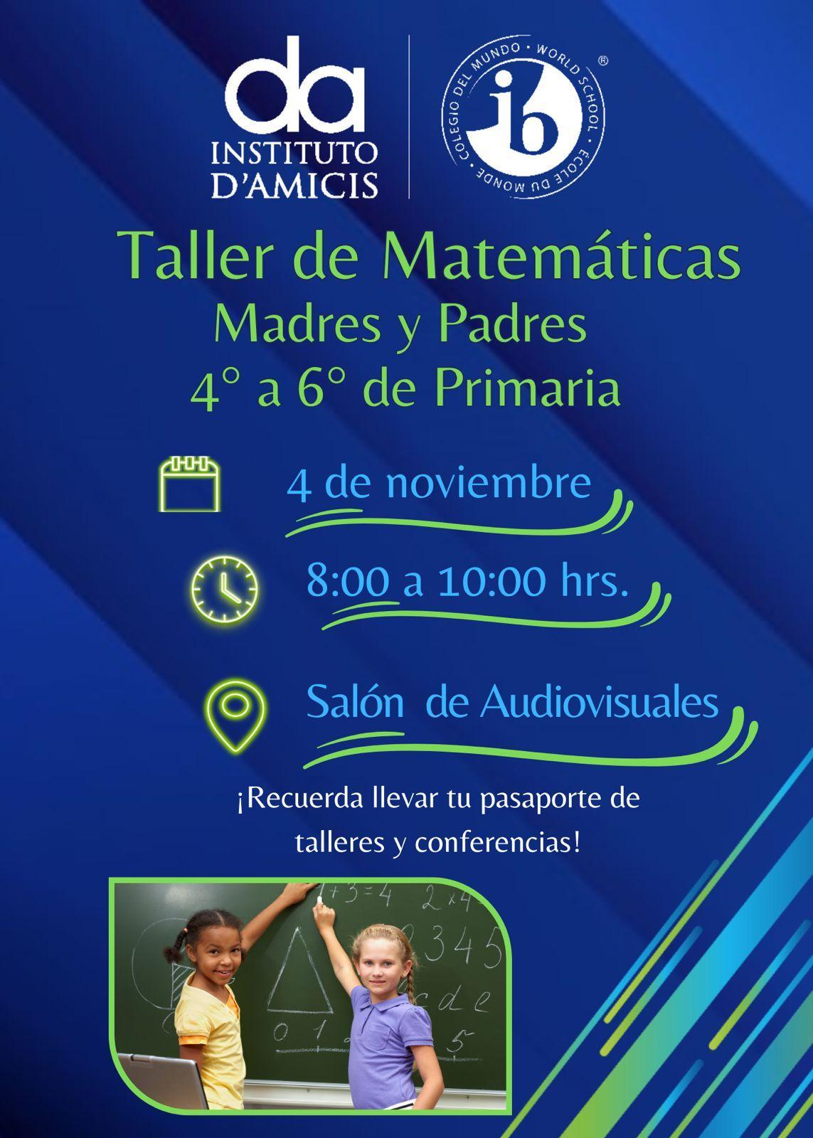 Taller de Matemáticas para Madres y Padres de Familia de 4° a 6° Primaria ¡Los esperamos! #OrgullosamenteDAmicis#20AniversarioDiploma IB