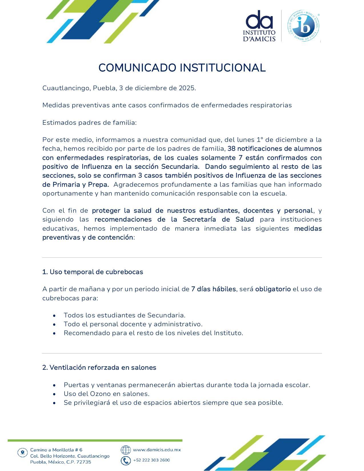 Favor de revisar el comunicado adjunto en la versión de PDF para leerlo completo. Gracias.