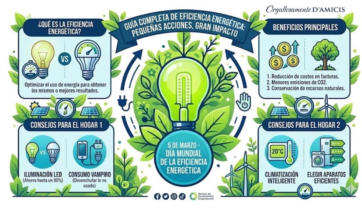 Hoy 5 de marzo conmemoramos el Día Mundial de la Eficiencia Energética. Este día es una oportunidad para reflexionar sobre cómo usamos la energía en nuestra vida diaria y cómo pequeñas acciones pueden ayudar a cuidar el planeta. La eficiencia energética significa usar la energía de manera responsable e inteligente, evitando desperdicios y aprovechando mejor los recursos.