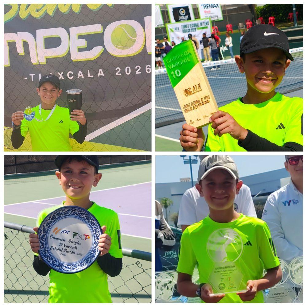 Muchas felicidades a Emilio Hernández Dusza, estudiante de 4°D de Primaria, ya que en días pasados ha obtenido el Primer lugar en el campeonato de los torneos juveniles de tenis en singles y dobles de la categoría 10 años de la Federación Mexicana de Tenis, en las etapas Estatal, Regional y Seccional 2026. Este logro es resultado de su disciplina, constancia y dedicación a uno de sus deportes favoritos, así como del esfuerzo que realiza para equilibrar sus responsabilidades académicas con su desarrollo deportivo.