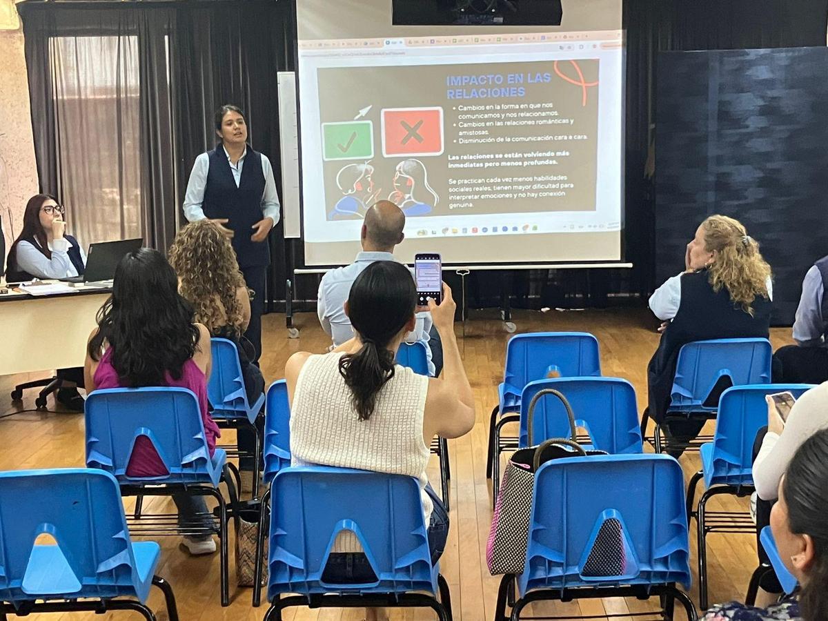 Asimismo, se compartieron estrategias prácticas para las familias, centradas en el establecimiento de acuerdos claros, el acompañamiento desde el vínculo, la comunicación efectiva y el modelado del uso saludable de la tecnología, promoviendo espacios de conexión en casa.